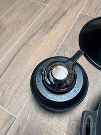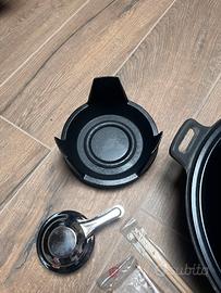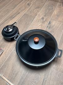 Wok in ghisa con coperchio, griglia poggia alimenti e scaldavivande ad alcool misura