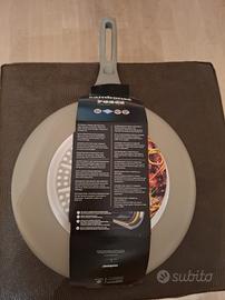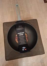 Wok Sambonet diametro 28 cm. Lavabile in lavastoviglie rivestimento in teflon di colore nero, può essere usata anche su piastra ad induzione.