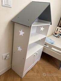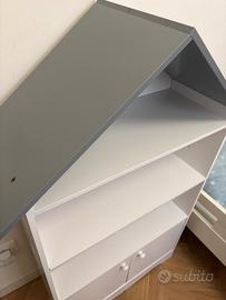 WOLTU Libreria in Legno per Bambini, Scaffale a Forma di Casa, Porta Giochi Organizzatore per Cameretta, con Ante Bianco + Tetto Grigio 62x27,2x115cm