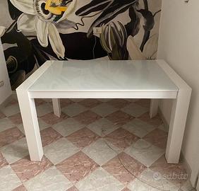 WOOD TAVOLO ALLUNGABILE (MAX 220 CM) L. 140 P.90 H.75 COLORE LACCATO BIANCO / VETRO EXTRA BIANCO