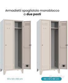 XLOCKERS n.4 Armadietti Spogliatoio Monoblocco 2 Posti - Armadio in Metallo Robusto e Ventilato, Armadietti Spogliatoio Made in Italy (Ripiano superiore - 69x33x180cm)