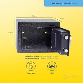 YALE Cassaforte XS YSV/170/DB2 Nero, con Tastiera Digitale, Indicatori di Luce a LED, Fissaggi a Parete e Pavimento, Capacità di 3.8 L, Dim Interne 170 x 230 x 170 mm, Mini, Versione Corrente