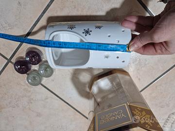Yankee Candle Tea light candles. bruciatore in ceramica fiocchi di neve con 4 lumini (2 profumazione lavender & oak,2 white fir sapin blanc) in confezione originale usato 1 volta. Luminary set set. Alto cm 16.