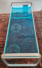 YCAMI TAVOLINO Struttura Alluminio e piano cristallo azzurrato 1990