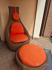 Misure: L 91 cm P 84 cm H 140 cm Materiale: Struttura: alluminio Seduta e poggiapiedi: EMU Wicker Piedini: acciaio inox valore 1000 euro