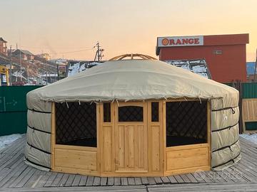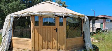 Vendo yurta di 30 mq. (6mt di diametro), vendo anche il basamento in legno (blocchi di cemento, travi e assi che costituiscono il pavimento della yurta.