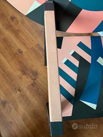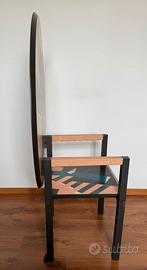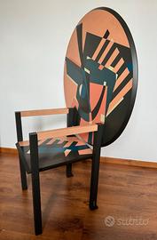 Esemplare degli anni ’90 firmato. Piano e sedile in legno laccato con decoro policromo decorato a mano. Braccioli rivestiti in pelle. La sedia si trasforma in tavolo ribaltando il piano. Trattasi di un particolare oggetto d'arredo che si colloca in una zona di confine tra arte e design. Il pezzo in oggetto si ispira alla tradizione dell'artigianato artistico italiano, libero da vincoli della produzione industriale, oggetto d’arte di grande carattere forte di una e rara componente artigianale e di un design dell’eccellenza. L’esemplare in vendita presenta qualche piccola imperfezione dovuta al tempo che non pregiudicano l’aspetto estetico e il valore dell’oggetto. Alessandro Mendini (1931-2019) Designer – Zanotta (anni ’90) Produttore Dimensioni: altezza 137 cm x larghezza 93 cm x profondità 50 cm Ritiro a mano Non cambi, permute o offerte al ribasso, astenersi perdi tempo e affaristi. Rimango a disposizione per informazioni Massima serietà