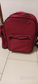 Zaino da picnic di colore rosso, ideale per le tue gite all'aperto.