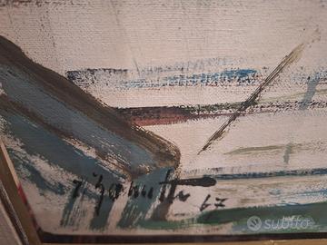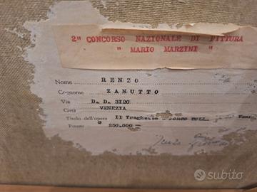 bel quadro di RENZO ZANUTTOmisure importanti 50 x70 piu cornice pregiata anno 1967 formato davanti e al retro con titolo " traghetto a porto Tolle"