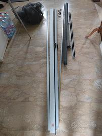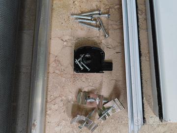 Vendo zanzariera scorrevole per porta o porta finestra, completa, con telaio in metallo bianco e zanzariera nuova in fibra grigia. Completa anche di tutta la minuteria e della vecchia rete, come pezzi di ricambio. Si può montare scorrevole a sinistra o a destra. misura del vano 120x230, spessore del rullo 5.1 cm. Adattabile a porte più basse oppure più larghe. Non spedisco perché i pezzi sono troppo lunghi.