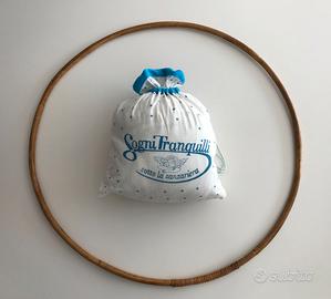 Zanzariera bianca per letto singolo o matrimoniale, diametro del cerchio 70 cm. Il cordoncino può essere regolato in modo che zanzariera poggi sul pavimento.
