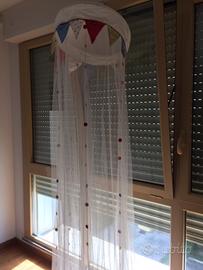 Zanzariera per letto con decorazioni per bambini, provvista di apertura per l'accesso. Perfetta. Valore commerciale 20 euro.