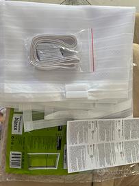 Zanzariera per porte colore bianco misure 100x220 con chiusura magnetica centrale. All interno della confezione sono inclusi nastro e pad a strappo. Mai utilizzata, NUOVA ed in confezione originale, VENDO per ERRATA MISURA Istruzioni per il montaggio incluse nella confezione