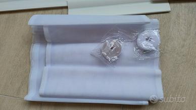 Zanzariera a tenda per portafinestra 100 x h 220 cm Composta da tenda a rete in 4 pannelli con bordi rinforzati e con pesi per stendere le strisce di tessuto. Listelli e zanzariera, di colore bianco, accorciabili a piacere o, in caso di portefinestre più ampie, si possono aggiungere più pannelli fino a raggiungere la larghezza desiderata. Istruzioni di montaggio in italiano con facili disegni intuitivi. 2 varianti di montaggio: - Fissaggio duraturo grazie alla fascetta adesiva - Fissaggio rimovibile grazie alla fascia a strappo con velcro. Resistente ai raggi UV Sono disponibili 3 confezioni ancora sigillate, MAI USATE per errato acquisto. Aperta una confezione solo per fare le foto. Vendo € 7 cad. Sconto sull'acquisto di tutte e 3 le confezioni: € 18 Visto l'ingombro della scatola, preferibile ritiro a mano, Genova zona Granarolo.
