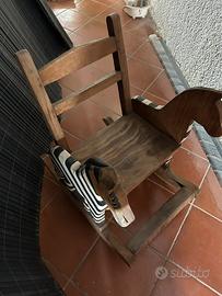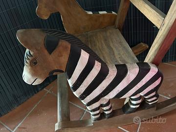 Bellissima sedia a dondolo in legno con zebre intarsiate. È in perfette condizioni, solo un po’ impolverata.