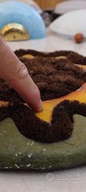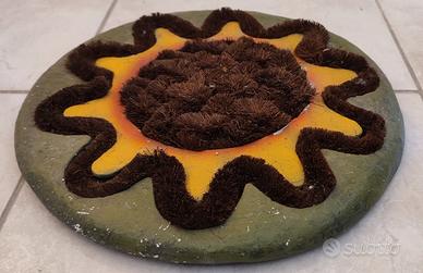 particolarissimo zerbino in terracotta beige/gialla con inserti di zerbino in cocco. Circolare di circa 30cm di diametro