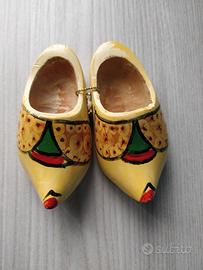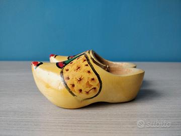 Piccolo souvenir Zoccoli olandesi in legno decorato Dimensioni: Larghezza 10 cm Lunghezza 11 cm Altezza 4,5 cm