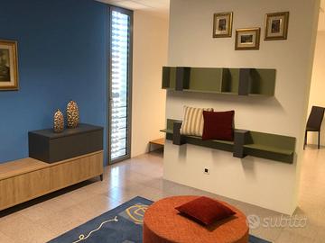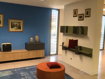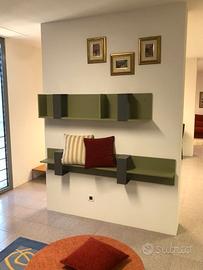 Mobile zona giorno composto da porta televisore largo 270 alto 37/69 cm + piedino , madia contenitore largo 135 cm alta 69 cm + piedino, mensole Strip una fila cm 180 una fila 150 cm.