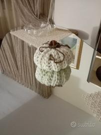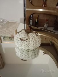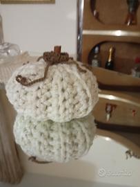Splendida zucca realizzata interamente a mano con la tecnica dell'uncinetto. Ideale per chi ama lo stile Shabby Chic o Farmhouse, perfetta per decorare la tavola, un camino o per creare un angolo accogliente in casa durante i mesi autunnali.