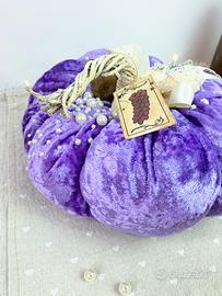 Zucca in velluto molto elegante, viola chiaro/lilla, completamente fatta a mano, decorata con applicazione di perle di diversa grandezza cucite una ad una.