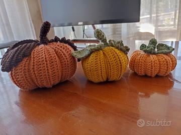 3 zucche decorative realizzate a mano all'uncinetto da me.