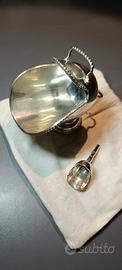 Zuccheriera da tavolo in argento con misurino da tea. Zuccheriera nata in Inghilterra, con marchio nella pancia dell' oggetto antico.