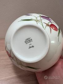 Zuccheriera di fine porcellana bianca con fiori Richard Ginori. Simpatico e particolare design moderno. La zuccheriera ha forma larga e schiacciata, il coperchio è bianco con manico “a ponte” Nuova mai usata