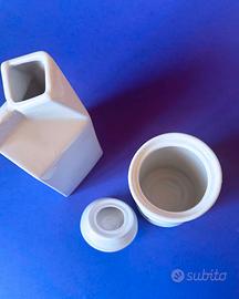 Brik e Barattolo" Zuccheriera e Lattiera in porcellana Collezione "Estetico Quotidiano" del brand di design Seletti - Mai utilizzate - Il rik del latte e la lattina dal monouso si trasformano in oggetti creativi e duraturi in finissima porcellana - In scatola/confezione originale con protezioni e la zuccheriera ha sotto il tappo un anello in silicone per chiusura perfetta. Misure: Zuccheriera lattina: ø cm 7,4 h 10,7 cm. - Lattiera Bricco: 7x7 h 14,5 cm.