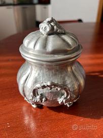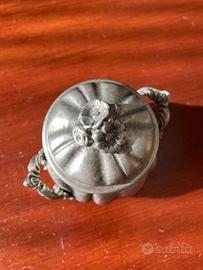 Zuccheriera in peltro con coperchio Marca: Cobra decorazioni floreali