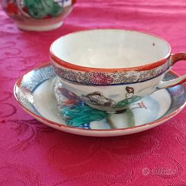 Collezionismo Lattiera zuccheriera e due tazzine porcellana finissima primi novecento giapponese geisha con ventaglio Originali d epoca
