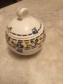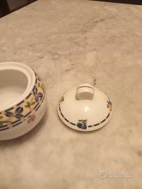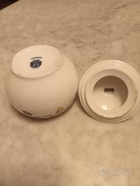 zuccheriera in porcellana della manifattura tedesca Baumgarten con coperchio con decori floreali alta cm 10 diametro cm 8