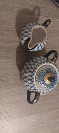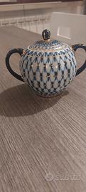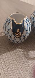 Bellissime porcellane imperiali russe 1744 blu cobalto decorate oro da collezione .3 pezzi