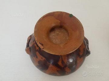 Zuppiera antica in terracotta, in perfette condizioni. Dimensioni: Diametro senza manici cm 20, altezza con coperchio cm 19,5. Spese di spedizione euro 10.