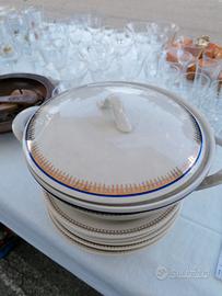 Zuppiera porcellana di Bohème con coperchio bordo oro e blu diametro cm. 23