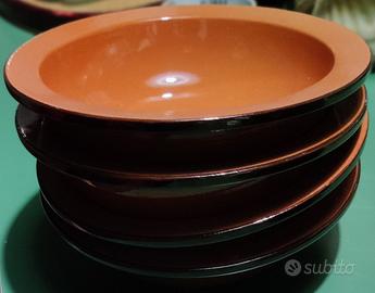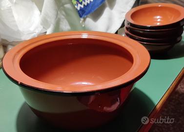 SERVIZIO PER MINESTRE MARCA PIRAL ,COMPOSTO DA UNA ZUPPIERA CON COPERCHIO E 4 PIATTI FONDI PER MINESTRE IN TERRACOTTA SMALTATA(PIRAL) PRODOTTI AD ALBISOL(SV)