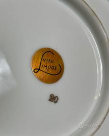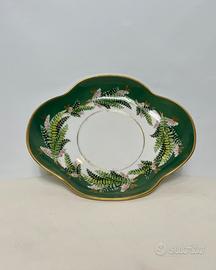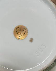 Zuppiera con piatto decorativo o da collezione. Porcellana Vieu Limoges, corpo verde, stile classico con finiture dorate e decorazioni botaniche.