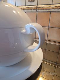 Vendo zuppiera in porcellana bianca con piatto, un contenitore utilizzato per servire zuppe, minestre o vellutate a tavola. Rosenthal Asimmetria disegnata da Bjorn Wiinblad. ottima finitura, mai usato