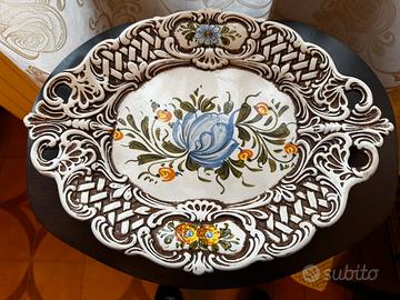Pregiata zuppiera, completa di cucchiaio in porcellana e bellissimo vassoio con decori floreali. Artigianato italiano, realizzato e dipinto a mano. È di antica fattura mai usata. Conservata benissimo anche nelle decorazioni superiori più delicate. Si noti l’intreccio della porcellana che lo rende un oggetto unico e da uso espositivo.