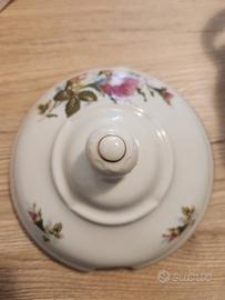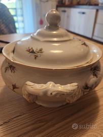 zuppiera con coperchio, disegno floreale, ceramica