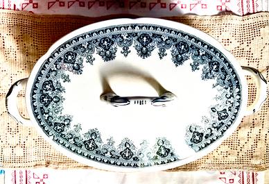La datazione è espressa in base al confronto con opere di quegli anni e alla presenza della scritta "SCI" nel marchio. L'industria ceramica di Laveno risale al 1856 ma è solo nel 1883 che la fabbrica assume la denominazione di "Società Ceramica Italiana" (S. C. I.). Questo decoro denominato "Bosphorus", che evoca in tono favoloso un paesaggio con un palazzo orientale e un giardino davanti a un golfo marino con monti sullo sfondo