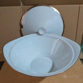 Grande zuppiera porcellana bianca bavaria Koenig con bordi oro forma ovale dimensione 30x27x10 con coperchio anni 70/80 perfetta non presenta nessuna sbechettature come nuova