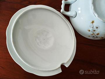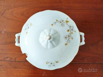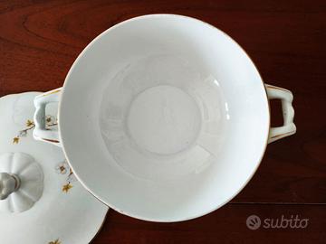 Vendo per inutilizzo zuppiera vintage in porcellana marca Korok, anni 50/60, bianca con decori floreali ed in oro zecchino,in eccellenti condizioni, poco usata. Le misure sono: cm.32x25x19. Trattandosi di compravendita tra privati, vale la formula del”visto e piaciuto” ed è pertanto esclusa qualsiasi forma di garanzia.