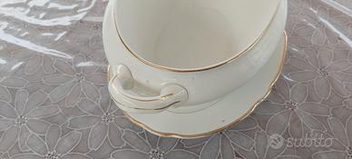 zuppiera Richard Ginori filo d'oro ovale numerata completa di piatto ovale e coperchio in ottime condizioni.