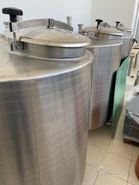 Per cessata attività vendo numero 3 serbatoi inox per alimenti da 10 hl cadauno. Pedana inox rialzata per serbatoi e scala controllo serbatoi. Motore ed elica per miscelazione. No perditempo