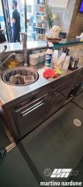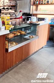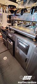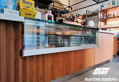 ARREDAMENTO BAR COMPOSTO DA: - N.01 BANCO BAR REFRIGERATO 1 PORTA + 2 CASSETTI COMPLETO DI LAVELLO DIM.100X85 - N.01 VETRINA REFRIGERATA VETRO DRITTO BASSO CM.150X85 - N.01 RETROBANCO MACCHINA CAFFè COMPLETO DI TRAMOGGIA BATTIFONDI. CASSETTO DI SERVIZIO E VANO LAVABICCHIERI DIM.180X70 MARCA: IFI CONDIZIONE: SEMINUOVO