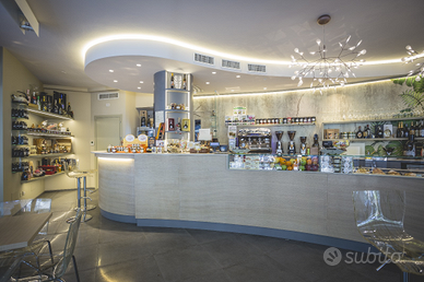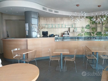 Per cessata attività vendo un arredamento completo, : la parte anteriore di 9,25 metri , divisibile in 3 pezzi , ha un frontale in legno naturale impiallacciato a mano , parte del piano di lavoro e' in corian e il rimanente è in pietra granitica, mensole e divisori in vetro , in basso ha una cella refrigerata con 4 cassettoni e 2 sportelli , un fabbricatore del ghiaccio da 40 kg della Brema e un plateau refrigerato di 2,10 metri! La parte posteriore, sempre divisibile in 3 pezzi , ha una facciata in legno massello laccato , piano di lavoro interamente in corian , lavello con 2 fori e miscelatore, cella Frigo con 2 sportelli, lavatazzine Aristarco, addolcitore anticalcare, predisposizione per macchina da caffè con profondi , mensole in vetro . A completare il blocco , 5 tavoli 60x60 con piede zavorrato e un tavolo alto per aperitivi tondo , diametro 60 , tutti dello stesso materiale e colore del frontale del banco .