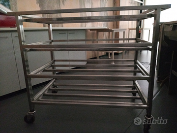 Carrello in acciaio mis. Lung. Cm 120 larg. Cm 65 alt. Cm 99. Euro 50.