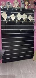 Vendo causa trasferimento attività Pareti attrezzate con mensole in vetro varie dimensioni come in foto. Le pareti sono in buono stato. Visionabili previo appuntamento. Solo ad interessati. No perditempo