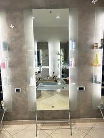 6 Specchi con led( impianto nuovo) luce calda, neutra e fredda. 6 poltrone di cui 3 con pompa idraulica. Cassa retroilluminata e 1 lavateste.