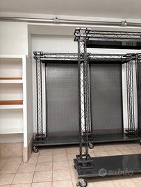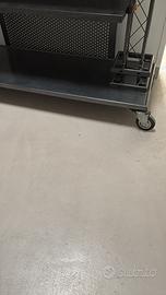 Arredamento perfetto per negozio abbigliamento stile industriale. Ci sono sei scaffalature, quattro grandi due più piccole. le pannellature posteriori si possono smontare ci sono i sistemi di bloccaggio per mettere le aste appendiabiti. Tutte le scaffalature hanno ruote con sistema di bloccaggio in più è presente un tavolo perfetto per posizionare cassa o merce le misure sono: 4 scaffalature 2,80 x 2,48 2 scaffalature 1,53 x 2,48 Tavolo L190 P130 H81 Ritiro su Roma, no spedizione